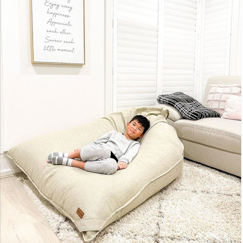 Made with quality linen and textured fabrics, our designer bean bags come in a range of shapes, including the traditional triangle, day bed loungers, and our popular chair and ottoman sets. Each style is thoughtfully designed to complement modern homes while offering functional, comfortable seating.
